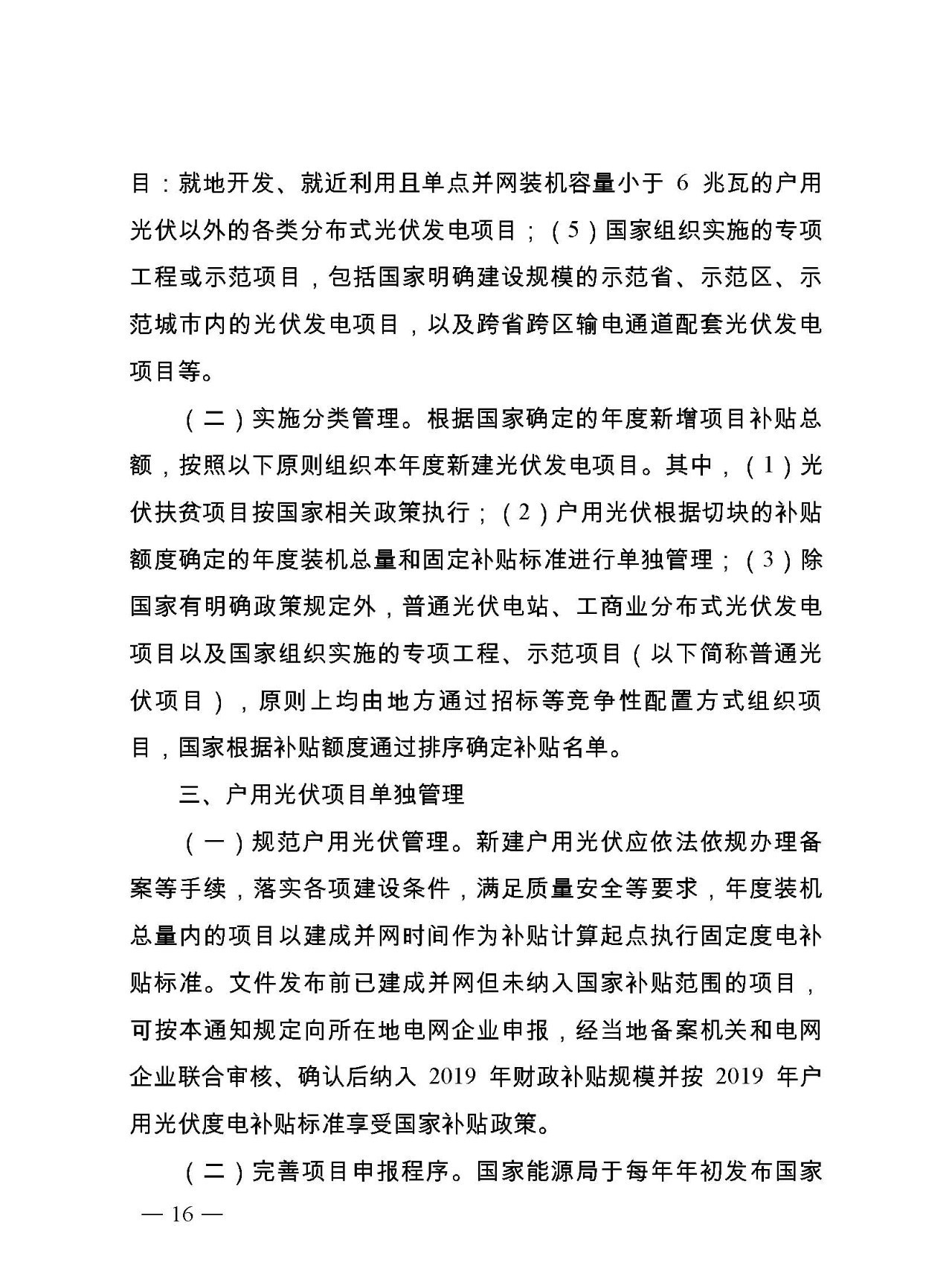 近年來,我國風(fēng)電、光伏發(fā)電持續(xù)快速發(fā)展,技術(shù)水平不斷提升,成本顯著降低,開發(fā)建設(shè)質(zhì)量和消納利用明顯改善,為建設(shè)清潔低碳、安全高效能源體系發(fā)揮了重要作用。為全面貫徹黨的十九大和十九屆二中、三中全會精神,以習(xí)近平新時代中國特色社會主義思想為指導(dǎo),堅持創(chuàng)新、協(xié)調(diào)、綠色、開放、共享的新發(fā)展理念,促進(jìn)風(fēng)電、光伏發(fā)電技術(shù)進(jìn)步和成本降低,實現(xiàn)高質(zhì)量發(fā)展,現(xiàn)就做好2019年風(fēng)電、光伏發(fā)電項目建設(shè)有關(guān)要求通知如下。
