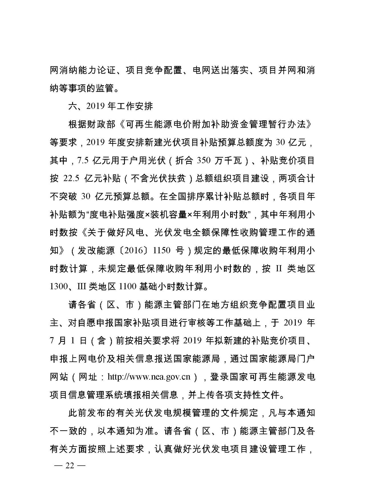 國家能源局關(guān)于2019年風(fēng)電、光伏發(fā)電項目建設(shè)有關(guān)事項的通知:http://zfxxgk.nea.gov.cn/auto87/201905/t20190530_3667.htm