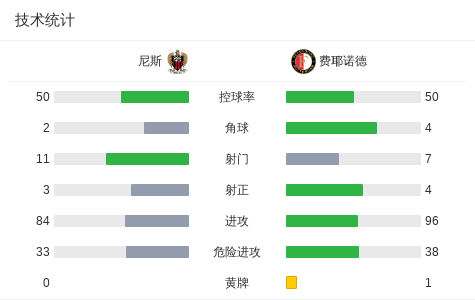 尼斯2-1費耶諾德,若納唐-克洛斯建功