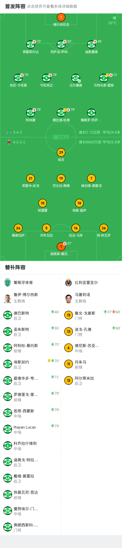 葡萄牙體育1-0比利亞雷亞爾,尤爾曼德點射制勝